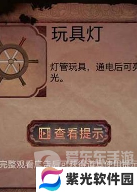 6、点击墙上的图片对其使用红墨水让图片变得清晰,查看图片上的图案,点击柜子机关盒,再将图案位置调整一致,获得玩具灯。