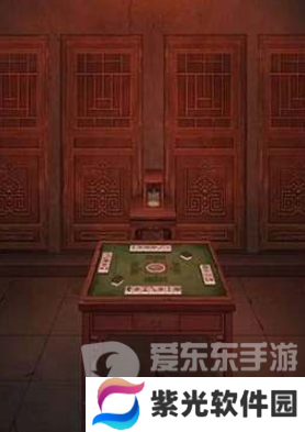 8、点击4个门中间的桌子得到符号提示,观察左右柜子上的两个竹笼,将麻将桌上的四张一筒打出,再摇动筛子,显示为3,进入3号门。