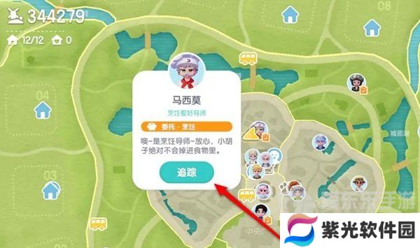 1、打开地图,点击“追踪”前往马西莫处。