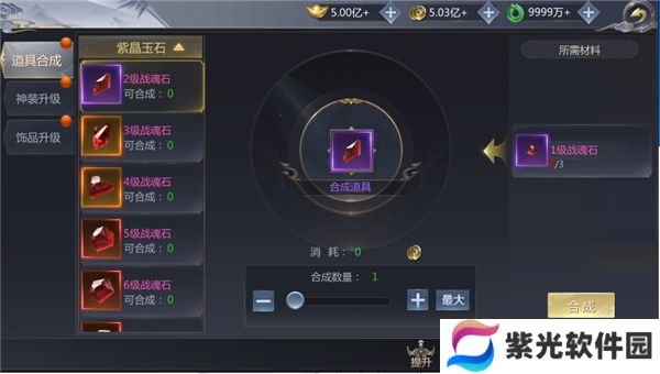 在锻造界面中,玩家可以合成两大类道具:【宝石】和【杂物】。每次合成道具都会消耗一定数量的金币。通过合成,你可以获得提升战力和属性的宝石,或者将杂物转化为更有用的道具。
