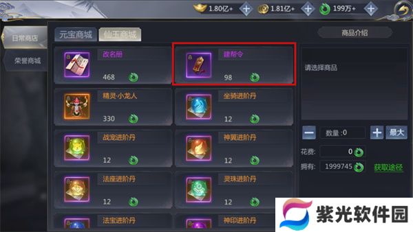 3、获取【建帮令】道具的途径如下:可以在商城选择【仙玉】页面,选择购买建帮令,单个售价为98仙玉。