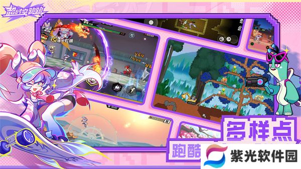 玩家将带领这些角色在不同的时空中穿梭,每个角色都拥有充沛的体力,能够持续进行跳跃、冲刺、滑行等跑酷动作,提供如同丝滑巧克力般的流畅体验。