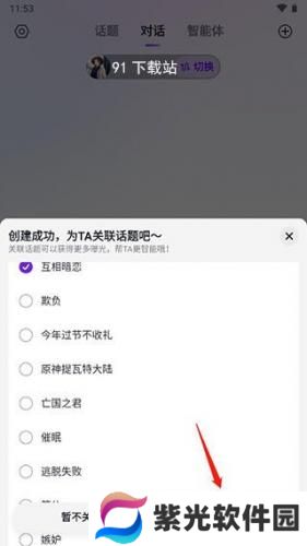5、创建成功后,为智能体关联话题以获得更多曝光,选择相关话题后点击确认关联。