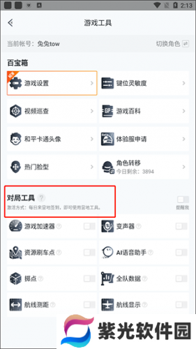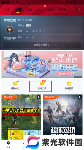 4、打开营地工具页面,即可找到游戏工具(即:对局工具,注意该工具需要当天登录营地,才能激活游戏内的工具功能)