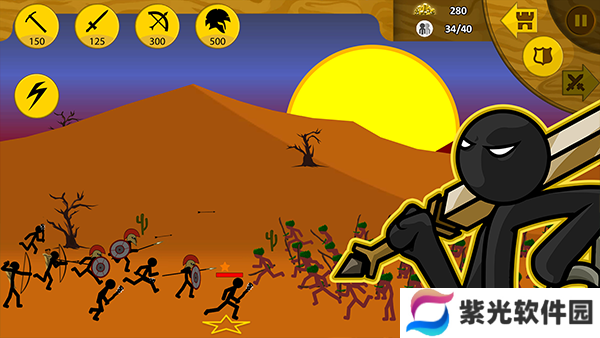 2、游戏中玩家将亲临激烈刺激的战场,指挥你的火柴人勇士进行作战,而且游戏中有着各种火柴人士兵可供训练!游戏中玩家需要一边需要组建自己的火柴人战队。