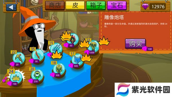 5、雕像炮塔:雕像恢复部分生命值,并通过发射激光自我保护,持续20秒。