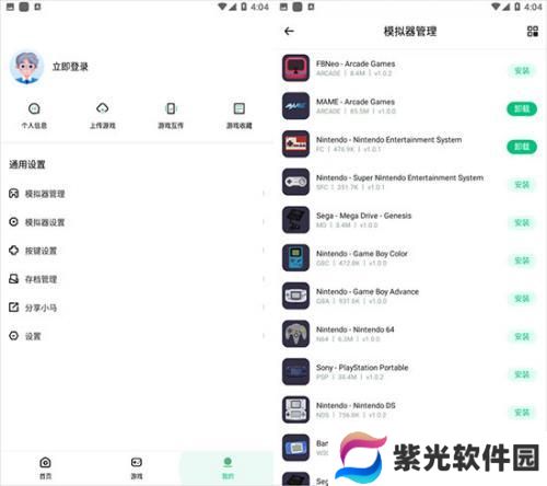 其它方面,你可以通过注册账号后,上传游戏到平台、游戏互传。在模拟器管理可以看到内置了很多游戏的模拟器,你可以进行安装和卸载。