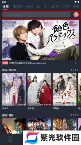 1、在豚豚剧app的“频道”页面的搜索框中,搜索自己想看的剧或者电影、综艺