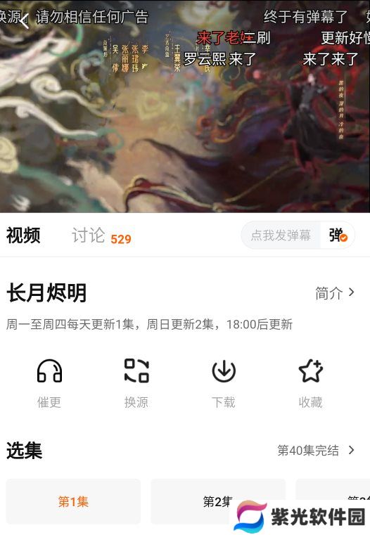 1、还是以长月烬明为例,重复上述步骤至视频播放界面,然后点击最中间的下载按钮