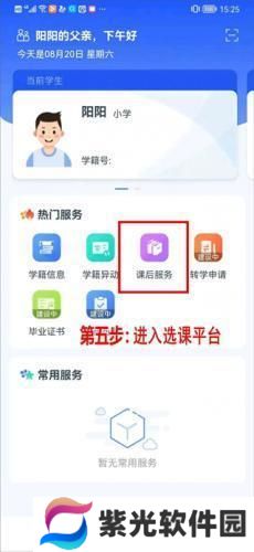 1、注册登录后,在首页中点击课后服务进入选课环节;