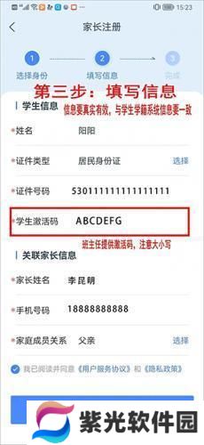 3、进入后填入相关信息,注意激活码是学校老师提供的。