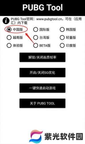 2、进入PUBGTool主界面,选择相对于的PUBG版本(中国版所对应的是和平精英);