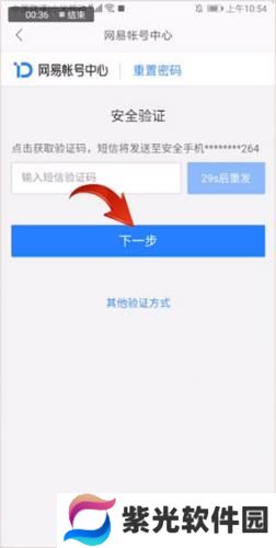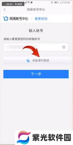 2、接着输入要重置密码的邮箱账号,点击进行验证,点击【下一步】,再完成手机短信验证;