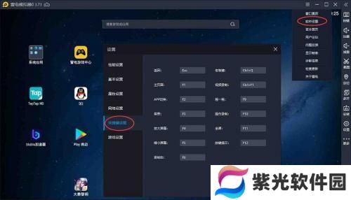 首先要知道模拟器本身自带的快捷键有哪些才行,打开模拟器右上角的软件设置,进入快捷键设置就可以查看到模拟器基本的快捷键,点击随便一个按键都可以更改。