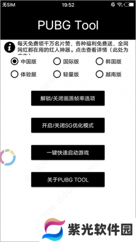 和平精英画质助手免费版可以一键解锁极限帧率和所有画质选项。用户还可以一键获取SG优化代码,支持专属定制。无需ROOT权限,傻瓜式操作一键开启。软件界面简洁,没有广告,使用起来也非常方便,并有详细的教程,可以帮助玩家一键解锁游戏的帧率限制,提高画质,让玩家有更好的游戏体验。