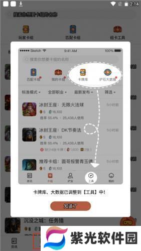 2、点击卡组,它为用户提供了万套卡,还会高效的进行新卡组更新,玩家可以随时随地查看、收藏并分享你心仪的卡组;