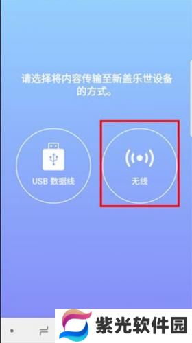 6、选择将内容传输至新手机的方式,这里以选择【无线】为例(说明:在旧设备上也需要选择【无线】方式)。