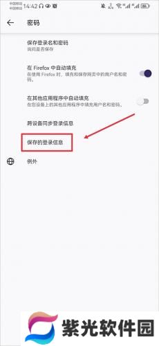 3、进入后首先点击保存的登录信息,接着在保存的登录信息中将你需要的网站、用户名、密码设置完成,例如百度账号。