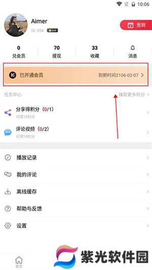 4、选择我的进入到个人中心,可以看到软件已经解锁了会员,并且是到2106年