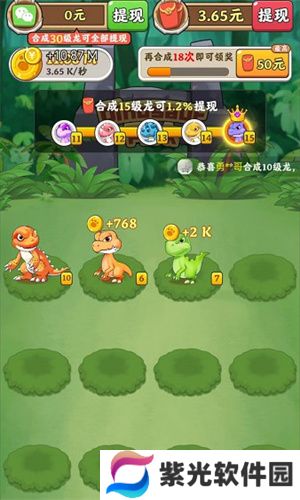 2.升级恐龙:通过合成,你的恐龙会不断升级,解锁更高级的品种,同时获得更高的红包奖励。