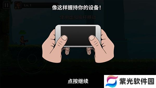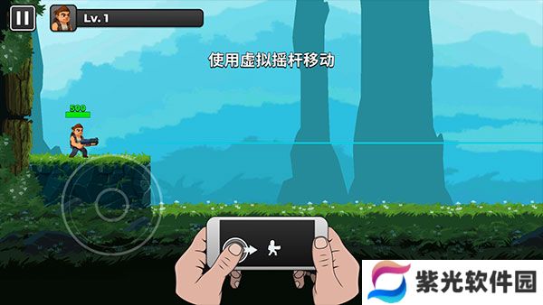 3、左上角可以暂停游戏,使用虚拟摇杆控制人物移动,前进。
