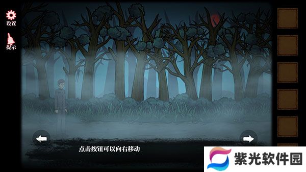 点击屏幕上的按钮可以让角色向右或向左移动,探索场景和寻找线索。
