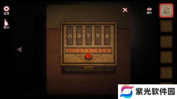 在柜子上找到 签筒,摇晃它并获得一张写有符号的纸片。注意观察签上的符号和它们的位置(高低)。