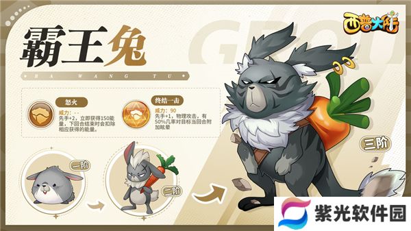 霸王兔是群居动物,强大且充满领导气质,拥有惊人的力量,能够挥动巨大的胡萝卜。霸王兔的弹跳能力异常优秀,巨大的尾巴帮助其保持平衡。它作为领导者沉稳且敏锐,而捣蛋兔则是其忠实的支持者和替补。