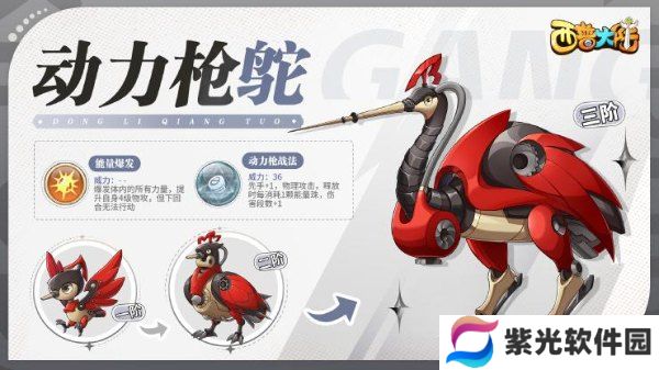 动力枪鸵曾是【钢针鸟】,经历了两次升级改造。失去飞行能力后,它以更快的速度进行啄击和奔跑。它的身体结构经过精密设计,可以以超高速度冲刺,锐利的长喙能够穿透任何障碍。