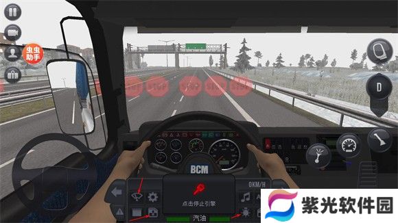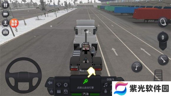 2、启动引擎后点击最右边的踏板也就是油门让卡车前进。