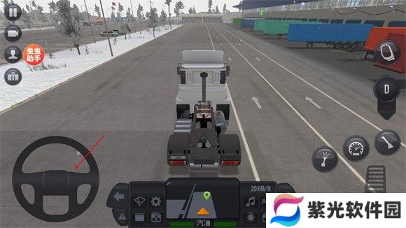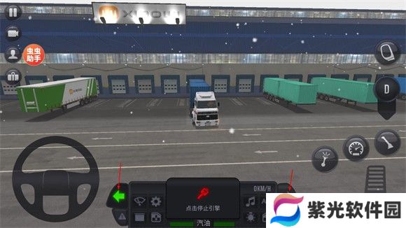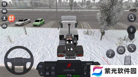 4、到达目的地后点击这个踏板也就是刹车让卡车停下。