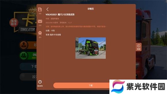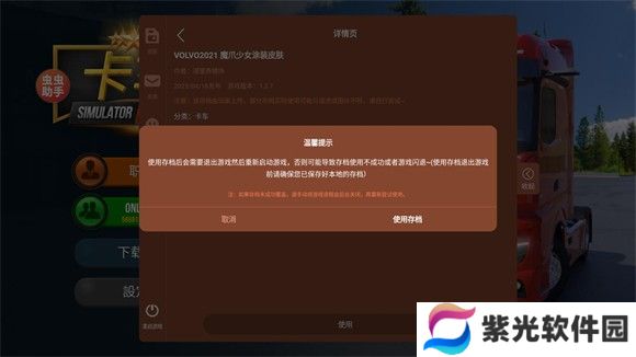 4、下载完毕后需要重启游戏,然后前往车库点击我的卡车就可以使用皮肤了。