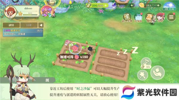 2、玩家在靠近工坊后使用【时之沙漏】可以大幅提升生产速度,可以提升速度与派遣的妖精属性无关。