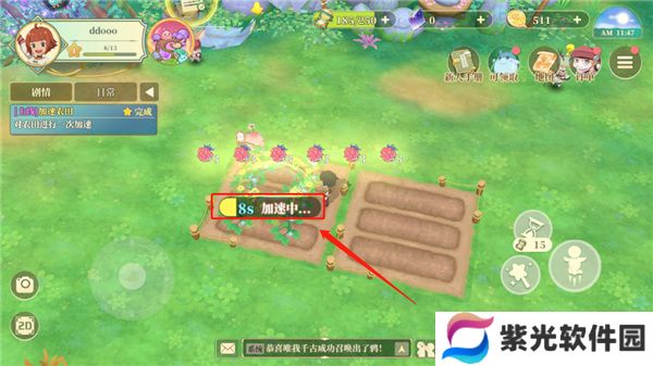 1、在左上角有一个【主线】任务,【加速农田】是对农田进行一次加速。