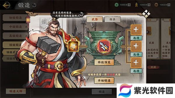 4、在工坊里,玩家可以通过锻造大师获得红色极品武器和防具。