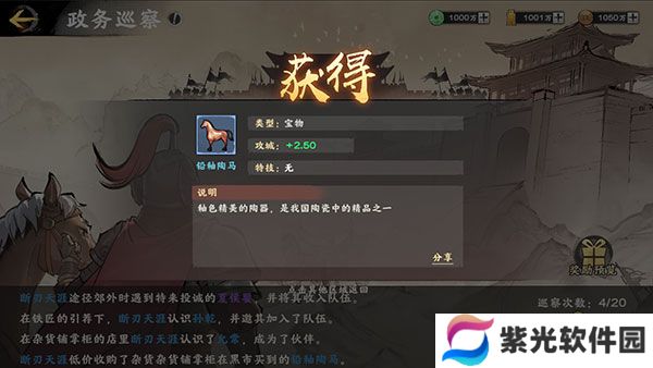 7、最后是宝物的获取方式:当主城等级达到8级并且解锁了政务台之后,就可以前往政务台,通过消耗基础资源政务巡查获得宝物。