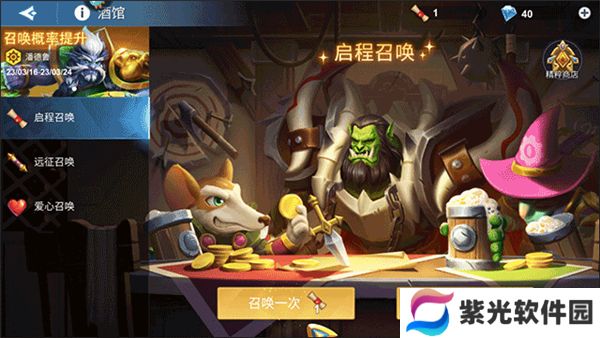 5、剧情后,在酒馆找到并点击【召唤一次】按钮选项。