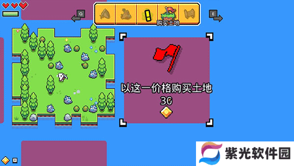 点击菜单栏中的“购买土地”按钮,可进入土地购买界面,你可以选择购买与已解锁岛屿相邻的岛屿