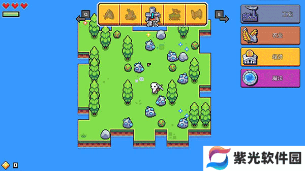 游戏中的建筑分为工业、农业、经济、魔法四大类,需要通过解锁技能逐步解锁所有建筑