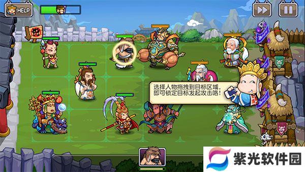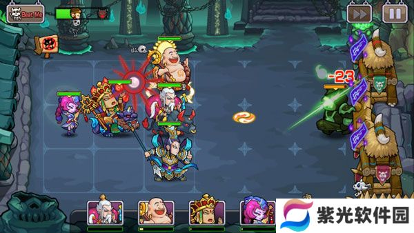 在关卡中选择出战阵容,并根据情况进行位置调换。战斗中技能会发亮,及时释放强力技能以扭转战局。