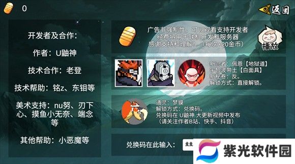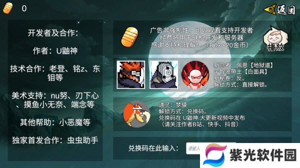 2、在这里就可以看到需要一定的条件才能够解锁卡卡西和长门,但是我们可以通过兑换码来进行解锁