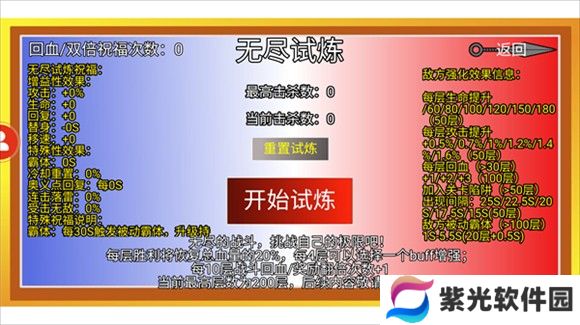 1、启动游戏后,进入游戏模式选择界面,选择“无尽试炼”模式开始您的挑战。