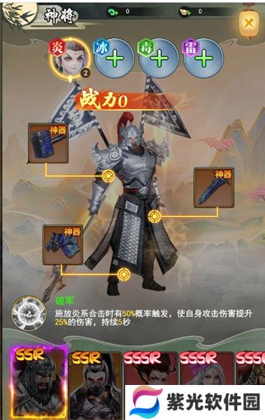 玩家获得神将激活后可以提升大量的战力,神将有多种属性。神将出战后战斗时可以使用神将的主动技能,造成强力效果。