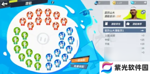 伙伴方面亚历山大沃克、吕冈茨多尔特与科里约瑟夫,分别会加强该球员的传球、中投、抢断属性,潜能方面如下图所示,这一套可以提升角色的运球、干扰和中投,充分发挥出亚历山大强大的控运能力。