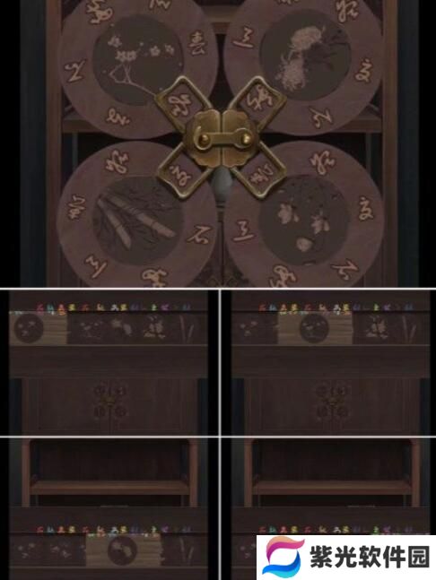 16、左边架子上方得到知县的官印,放入带孔木板,滑动得到梅兰竹菊信息打开柜子得到雕像的手臂。
