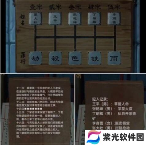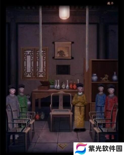 17、公堂,给人偶安装头颅和手臂,在盒子里放入知县的官印,根据审案记录解二元一次方程,打开签筒黑绿红白5081,得到虎眼。