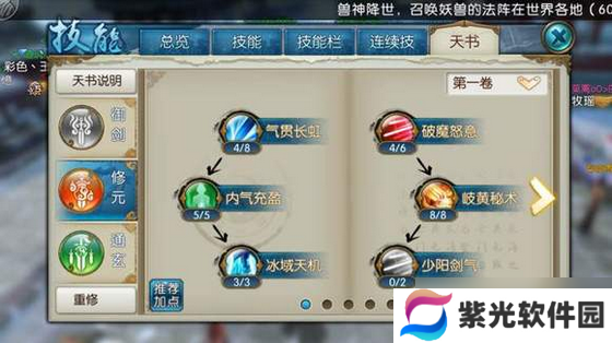伤害优先!第五卷天书,优先点右侧路径的伤害加成节点(如雷霆之怒、风雷之契),大幅提升整体AOE输出。左侧的控制效果(如冰封万里)可后续补足。