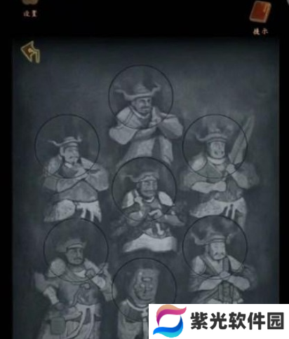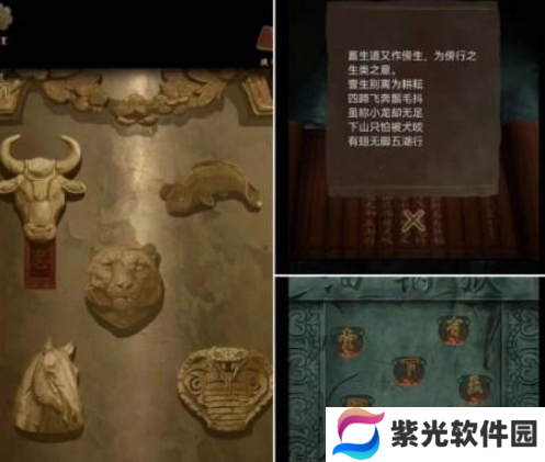 3.进到大殿,桌子获得畜字圆块,放入铜镜上,点击镜面依据竹简和外边锅中狱上信息放置,获得忠字木牌。
