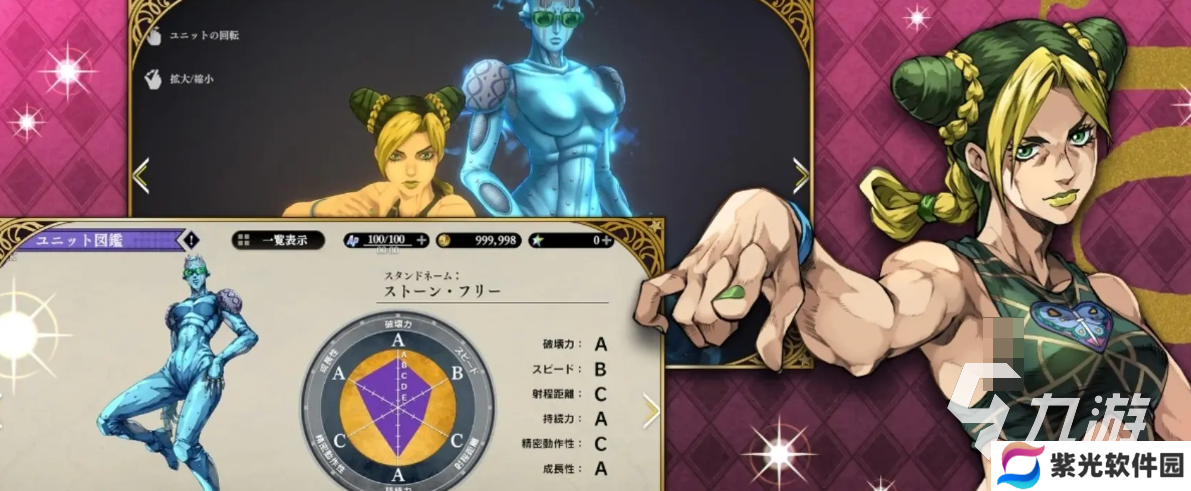 剧情方面,本作重现JoJo动画从《幻影之血》到《石之海》多个篇章的经典剧情画面,并融合图鉴与角色关系图功能,让玩家复习角色背景、替身之间的羁绊,甚至更理解人物间的情感与冲突。