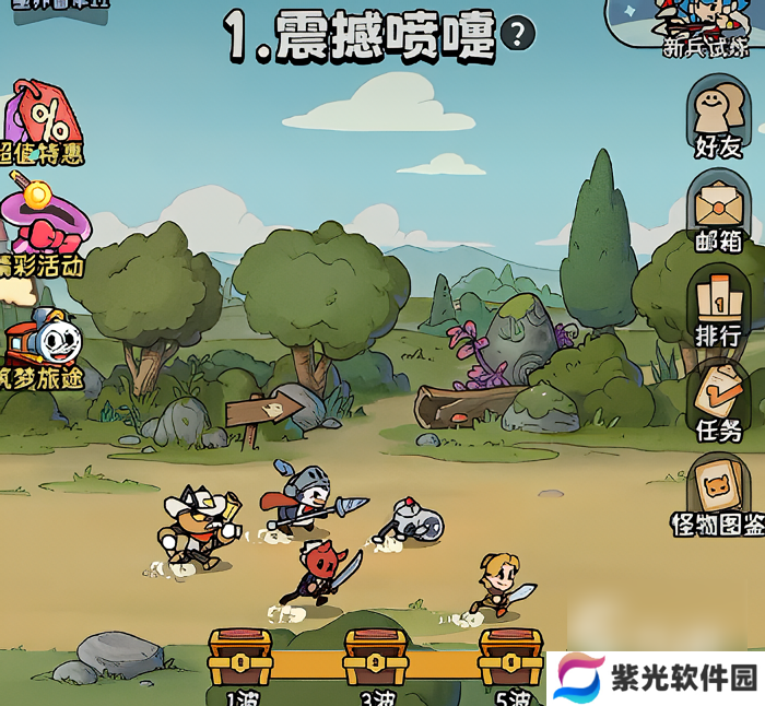 首先大家需要做的是搭配一套阵容,需要在开局前找三位英雄搭配一套初始队伍,在这套的搭配中大家需要需要高品质的英雄大卫,这类英雄单位可以通过招募和首充奖励获取,这招募先不看,大家需要先去看首充奖励,通过首充是可以拿到一位神话品质的英雄的,这英雄在现在这阶段很好用,是我们可以免费拿到的最好用的核心单位。